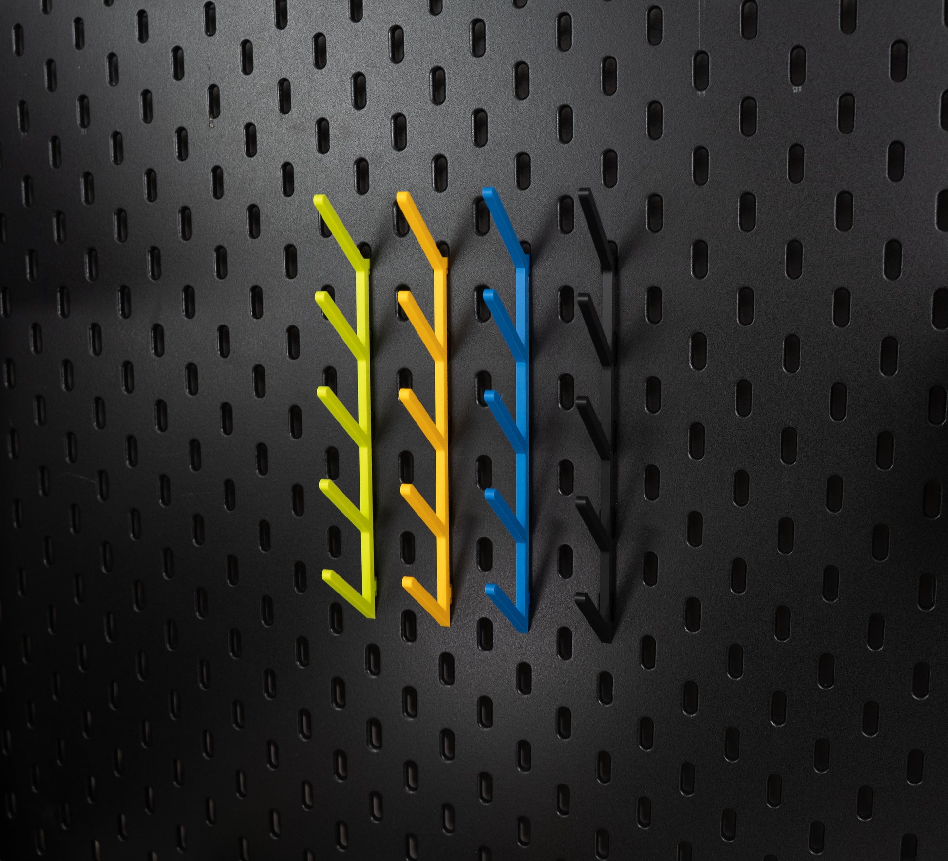 Organise your sewing threads with this 4 spool holder, perfect for organising your craft space. Designed to hold spools of up to 35mm in diameter, each holder holds 5 spools. The holders are quick and easy to install on IKEA Skadis pegboards.