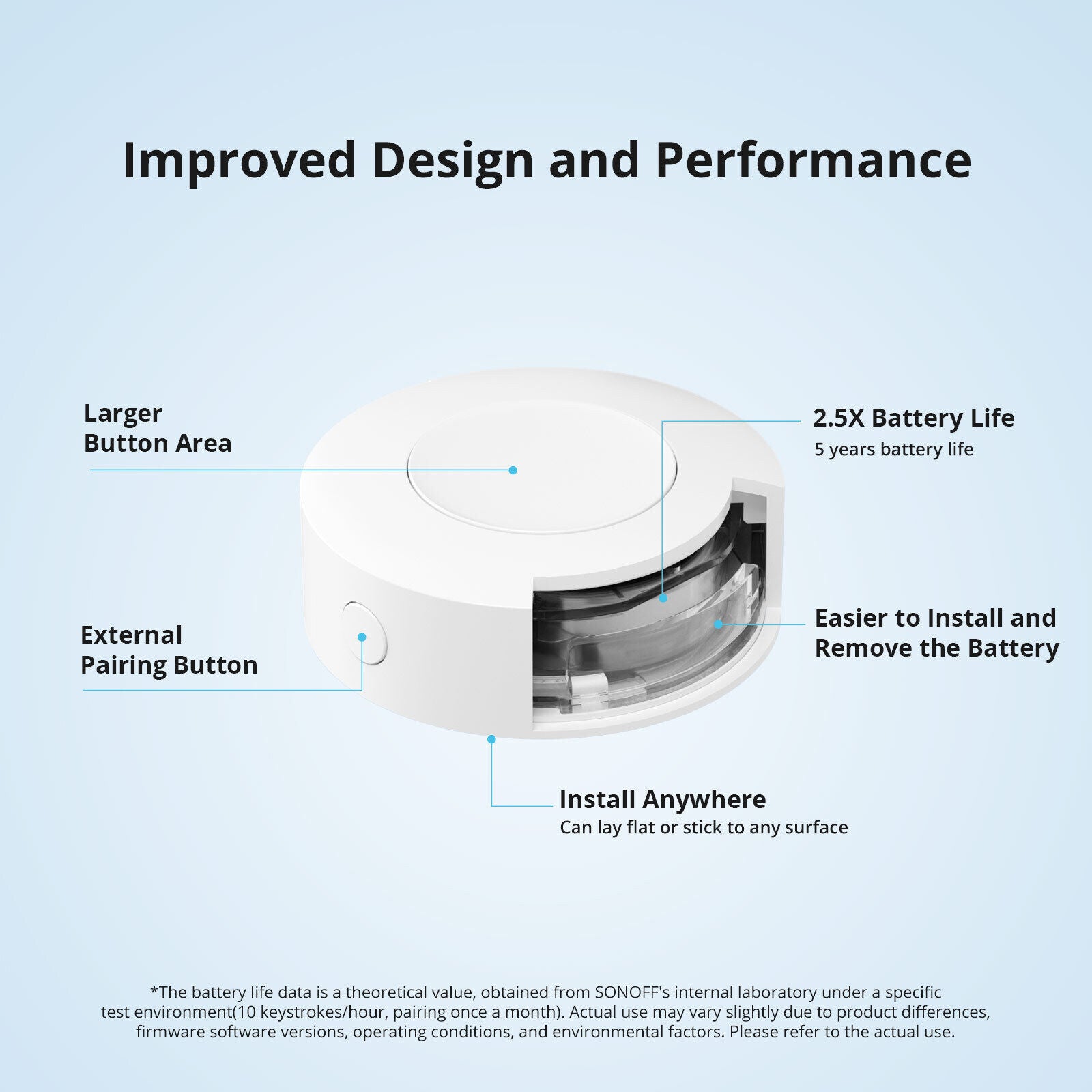 - Compared with SNZB-01, SNZB-01P has improved design and performance. With a larger button area, 5 years battery life, external pairing button, the battery is easier to install and replace.