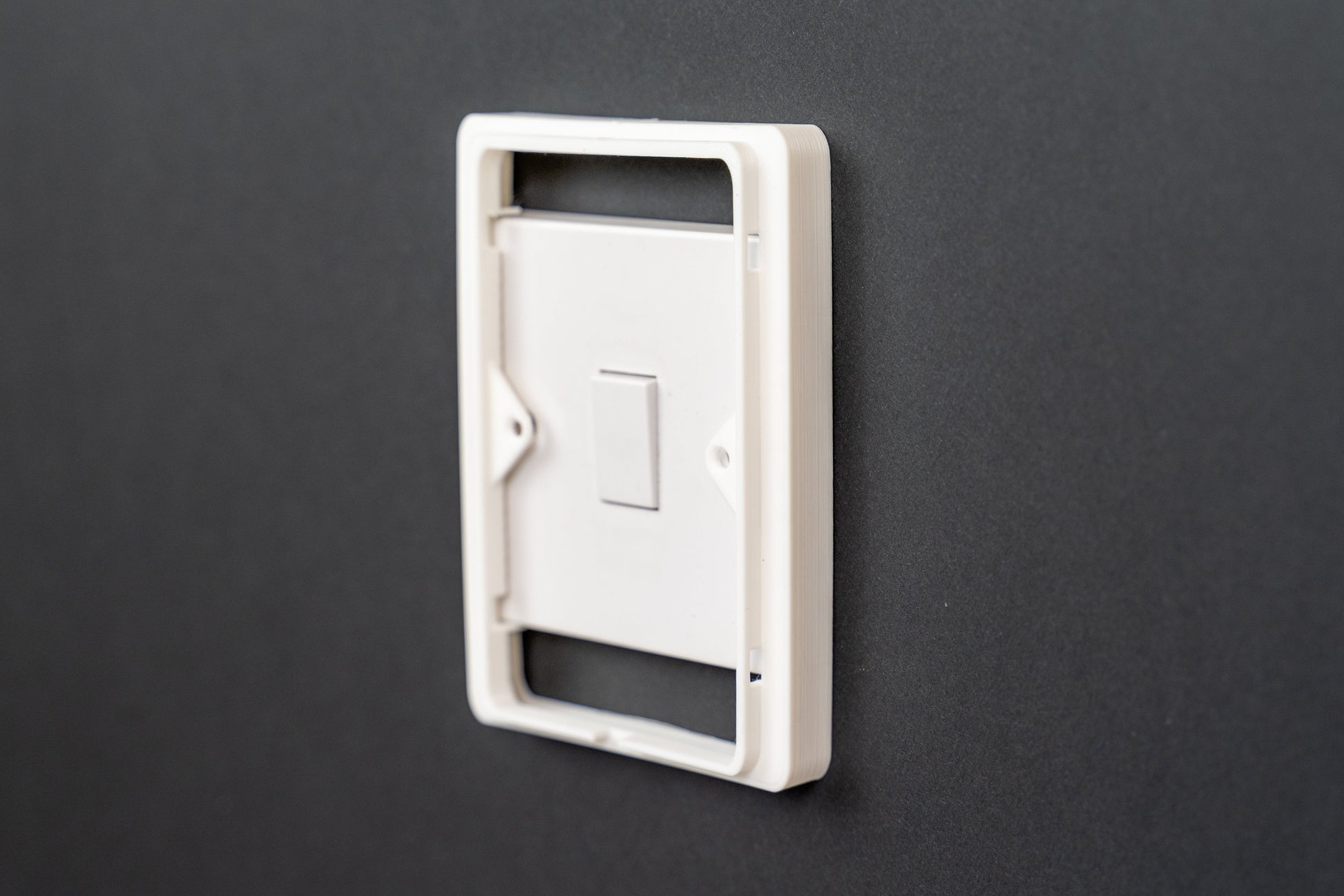 Will fit around a standard, single (86mm square) UK switch plate. Maximum depth (tip of the switch to the wall) is 16mm